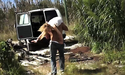 2 teen babysitters give oral pleasure in a van