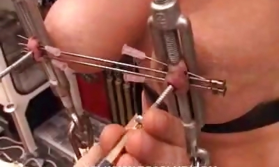 tortura extraordinaria de pezones, mordaza brutal, un cráneo pummeling, mientras que la silla sybian hace su semen fuera de su cerebro-cerdo-atado