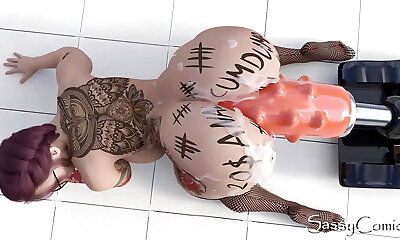 estiramiento extremo del culo de la máquina de la cogida anal del consolador del monstruo-animación 3d