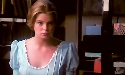 Torrid rather pallid red haired sex addict in silk nightie had fun on the chair