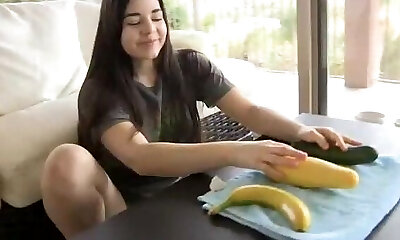 Cucumber in her pussy, cucumber in her ass