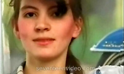 Kinky amateur slender chick plays with her big puffy nipples