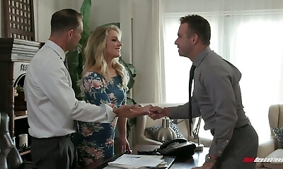 Sexy ash-blonde stunner pulverizes her boss in his studio for a super-steamy hard-core porn experience!