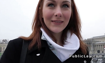 Mind-blowing redhead beauty goes outside to jerk the snatch