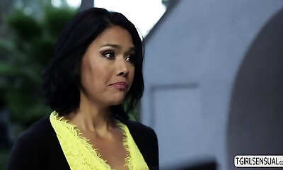 Small Asian TS deepthroat and fuck big cock