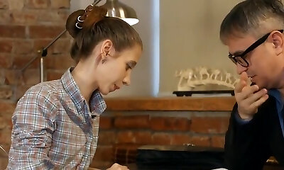 German skinny nubile prostitute fucks with old gross grandpa in brothel