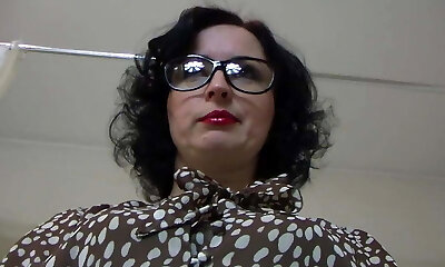 Busty Spex Milf In Stockings Jerking Cock