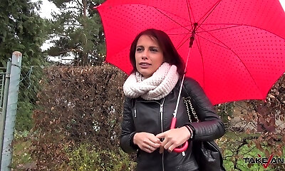 ziemlich first-timer braunhaarige stunner wird im taxi gelockt