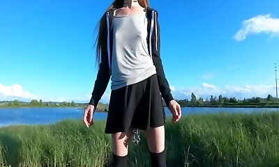 sobald sich die schlanke nymphomanin auszieht, pinkelt diese schlampe im freien