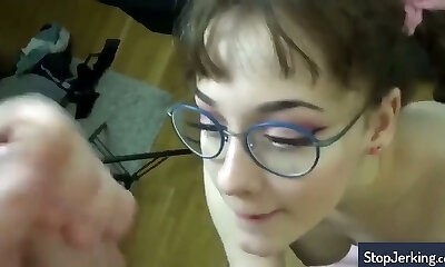 nerdiger honig aus fernost will, dass ihr mund mit sperma gefüllt wird