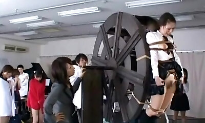 japanese schoolgirls punished on waterwheel