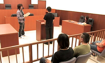The suspect controls to fuck his wife in court to demonstrate his innocence