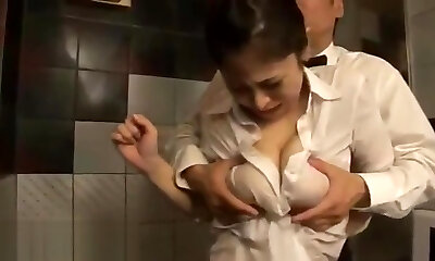 Asian Janitor Reiko Nakamori Eats Cum While Fuckin' In A Gangbang