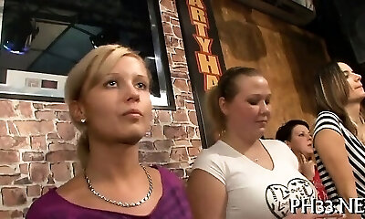 Yong amazing girls in club are pleased to poke