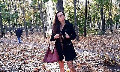 Walking NO PANTIES in Pantyhose #PUBLIC Autumn Park