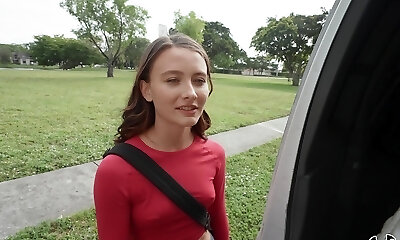 Skinny amateur French teen gets ravaged in exchange for a car ride