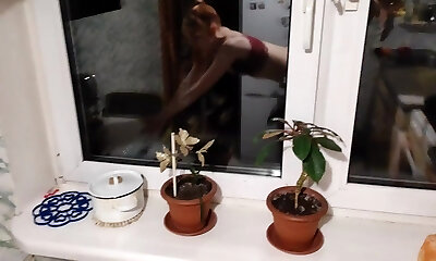 Redhead BBW amateur mature MILF masturbates in the kitchen