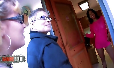 Hot unexperienced FFM action with ebony teen and ugly brunette MILF