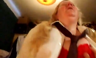 Chubby ugly light-haired wifey provides her hubby with solid blowjob and titjob